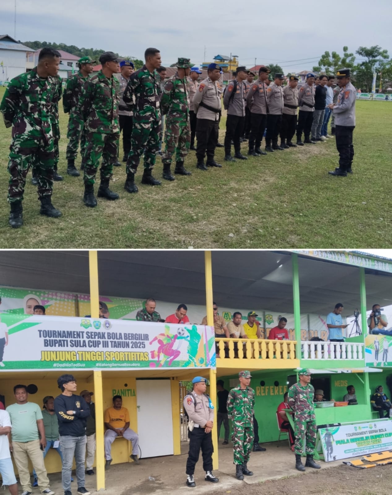 - Sanana, Maluku Utara — Turnamen sepak bola Bupati Sula Cup III yang digelar di Kabupaten Kepulauan Sula berlangsung aman dan tertib berkat kesiapsiagaan tiga satuan keamanan yang selalu bersinergi menjaga jalannya pertandingan.